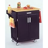 9001-0041This feature-packed kitchen cart includes solid wood construction, heavy duty casters, concealed storage, and so much more! This kitchen cart comes with a black finish and wood top. Features: -Solid wood construction -Wood top -Solid wood base in black finish -Enclosed storage with MDF insert panels on cabinet doors for increased strength -Utility drawer with metal drawer suspensions -Brushed chrome pulls -Adjustable condiment or spice caddy -Towel bars -Assembly required -Heavy duty casters, with front casters locking - Also available with a black granite top, a grey granite top, or a stainless steel top -Overall dimensions: 35.5" H x 32.5" W x 18.75" D Assembly Instructions